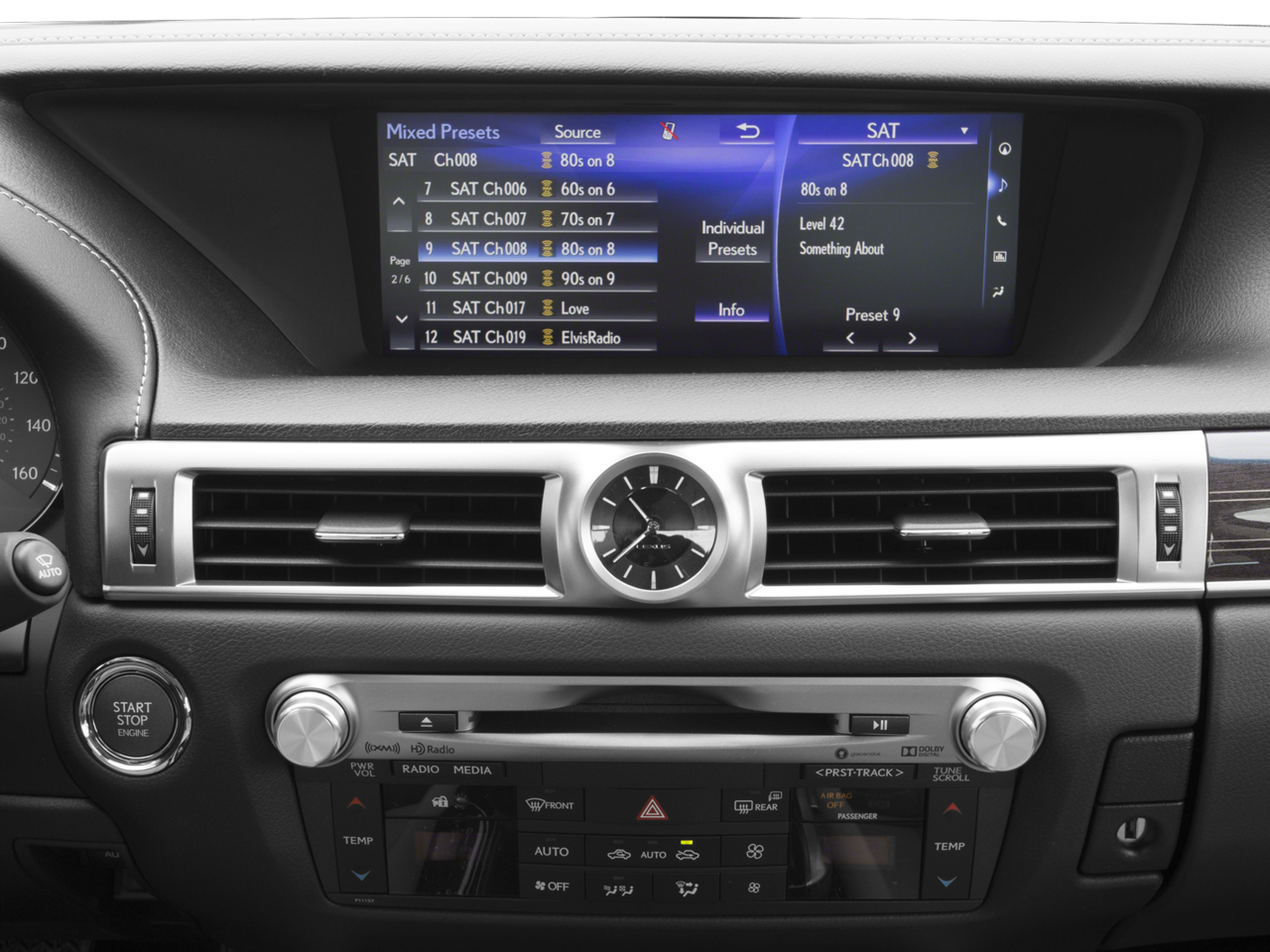 - Radio: Lexus Premium AM/FM/DVD/HD Audio System -inc: WMA/MP3 capability, 5.1 surround sound, 12 speakers, Bluetooth® streaming, advanced voice recognition, aux and iPod/USB input plugs, digital signal processing w/Automatic Sound Levelizer (ASL), electronic crossover network, Gracenote music management system, integrated SiriusXM satellite radio receiver (90-day trial subscription), MP3 sound enhancement, rear glass-imprinted radio antenna w/separate FM diversity antenna, text to speech SMS w/navigation, theft-deterrent design and Siri Eyes Free mode for iPhone 4S, 5 or newer