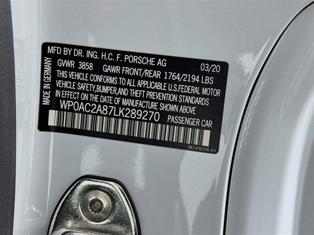 White 2020 Porsche 718 Cayman GT4 4.0L H6 DOHC 24V LEV3-ULEV125 414hp