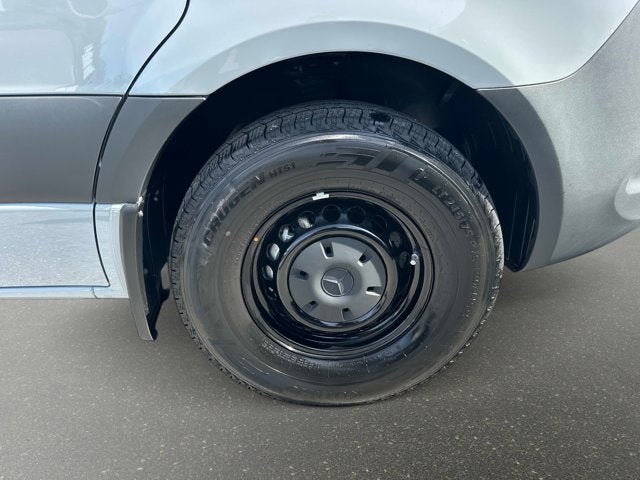 2025 Mercedes-Benz Sprinter 2500 Cargo 170 WB High Roof 16" x 6.5J Steel Wheels, 3.923 Axle Ratio, 4-Wheel Disc Brakes, 5 Speakers, ABS brakes, Air Conditioning, AM/FM radio, Armrest for Driver's Seat, Armrest for Front Passenger's Seat, Bodyside moldings, Brake assist, Co-Driver Thorax-Pelvis Sidebag, Driver door bin, Driver's Seat Mounted Armrest, Driver's Seat Occupancy Sensor, Dual front impact airbags, Dual front side impact airbags, Electronic Stability Control, Emergency communication system, Exterior Parking Camera Rear, Front anti-roll bar, Front Bucket Seats, Front Passenger Airbag, Front wheel independent suspension, Fully automatic headlights, Heated door mirrors, Heated Driver's Seat, Heated front seats, Illuminated entry, Low tire pressure warning, Maturin Fabric Upholstery, No Factory Installed Flooring, Outside temperature display, Overhead airbag, Overhead console, Passenger door bin, Passenger seat mounted armrest, Power door mirrors, Power steering, Power windows, Radio: Standard, Rain sensing wipers, Remote keyless entry, Speed control, Standard Driver Seat, Standard Front Passenger Seat, Steering wheel mounted audio controls, Tachometer, Tilt steering wheel, Traction control, Variably intermittent wipers. Silver Gray